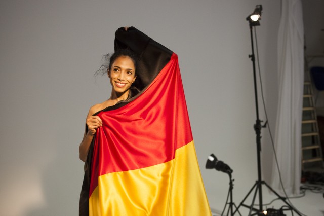 Zohre Esmaeli folgt Claudia Schiffer, die, ebenfalls in eine Deutschlandfahne gehüllt, das Gesicht der Kampagne 2006 war.