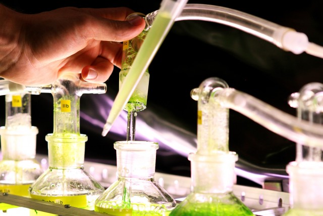 Mit CO2 und Abwärme aus Biogasanlagen züchten Forscher Algen – als Rohstoff für Kosmetik oder Biodiesel