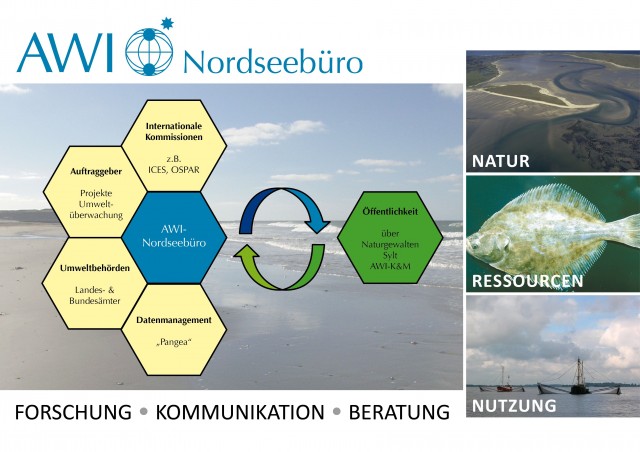 Der Erhalt des ökologischen Gleichgewichts der Nordsee sowie die schonende Nutzung ihrer Ressourcen sind zentrale Aufgaben. Das Alfred-Wegener-Institut (AWI) für Polar- und Meeresforschung hat das Nordseebüro gegründet, um Inhalte seiner Forschung auf verständliche Art und Weise der Öffentlichkeit, den Behörden und der Politik zu vermitteln und Entscheidungsprozesse zu unterstützen. So entwickelt das AWI-Nordseebüro Strategien für eine umweltverträgliche Nutzung der Offshorewindenergie und den Schutz des UNESCO-Weltnaturerbes Wattenmeer.
