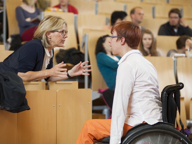 Welchen Beruf will ich ergreifen? Menschen mit geistiger Behinderung haben bei dieser Frage oft wenig Auswahl; meist arbeiten sie in Werkstätten. Das Institut für Inklusive Bildung eröffnet ihnen neue Perspektiven: Innerhalb von sechs Semestern werden sie zum Dozenten ausgebildet. Als Experten in eigener Sache halten sie Seminare an Hochschulen und vermitteln Wissen rund um die Lebenswelt von Menschen mit Behinderung. Denn Inklusion kann nicht am Schreibtisch gelingen, sondern nur, wenn zukünftige Führungs- oder Lehrkräfte die Betroffenen zu Beteiligten machen und ihre Fähigkeiten und Bedürfnisse in der Praxis kennenlernen.