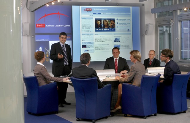 Berlin ist das Entscheidungszentrum der Bundesrepublik, bietet günstige Immobilienpreise und liegt im Herzen Europas. Um Investoren von den Standortvorteilen der Hauptstadt zu überzeugen, haben die Wirtschaftsförderer von Berlin Partner das Business Location Center (BLC) gegründet. Das Wirtschaftsportal bietet Interessierten online oder im Showroom zugeschnittene Branchen- und Arbeitsmarktdaten, Immobilienangebote und Flächenpläne. Komplettiert wird das Angebot durch ein 3D-Stadtmodell. Seit dem Start des BLC 2001 haben sich über 1.000 Firmen in Berlin angesiedelt, darunter der Musiksender MTV und der Arzneimittelhersteller Pfizer.