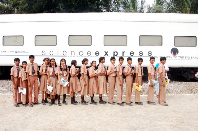 Der Zug hält und nimmt seine Gäste mit auf die „Expedition Zukunft“. Von März bis Oktober wird der „Science-Express“ in rund 60 deutschen Städten Station machen. Den Besuchern eröffnet sich im Inneren ein Überblick über aktuelle Spitzenforschung aus deutschen Universitäten, Forschungsinstituten und Unternehmen. Die Ausstellung stellt nicht nur Themen der aktuellen Grundlagenforschung, sondern ebenso innovative Technologien und Produkte vor. Die Besucher erfahren, wie Wissenschaft und Technik in den kommenden Jahren weltweit viele Lebensbereiche beeinflussen werden. In Medizin und Ernährung etwa, in den Bereichen Energie und Umwelt sowie in der Bildung. Zugleich gibt die Ausstellung Antworten auf die Frage, warum sich in Deutschland Investitionen in Bildung und Wissenschaft lohnen. Darüber hinaus will der Wissenschafts-Express junge Menschen für ein naturwissenschaftliches Studium und wissenschaftsnahe Berufe begeistern. Denn um Deutschland zukunftsfähig zu machen, ist schon bald der wissenschaftliche Nachwuchs am Zug.