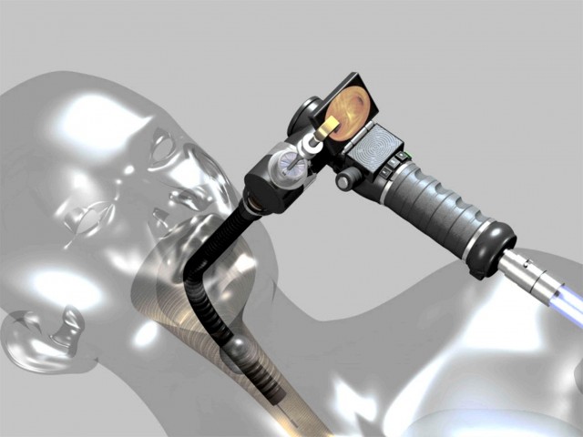 Es ist bei Operationen unter Vollnarkose die Regel, dass Patienten künstlich beatmet werden. Problematisch wird es bei Eingriffen an den Atemwegen, wenn entweder kurzzeitig die Atmung zur Einführung der Instrumente unterbrochen oder der Brustkorb geöffnet werden muss. Das von Dr. Christoph Schramm neu entwickelte Fibuskop schafft jetzt Abhilfe. Es ist ein flexibles, lenkbares Endoskop, mit dem Ärzte in Atemwege schauen können. Gleichzeitig werden Patienten durch diese Erfindung permanent künstlich beatmet, da das Fibuskop im Gegensatz zu herkömmlichen Endoskopen innen hohl ist. Außerdem lassen sich noch zusätzlich problemlos Operationsinstrumente einführen. Trotz der drei Funktionen ist die Bedienung für Narkose,- Intensiv- und HNO-Ärzte einfach, sodass sie sich ganz auf den Eingriff konzentrieren können. Dem Patienten bleibt der Schnitt durch den Brustkorb erspart. Das weiterentwickelte Endoskop lässt Ärzte auch schwierige Operationen vornehmen, wie die Entfernung von Tumoren oder Speisepartikel die in die Luftröhre gelangt sind.
