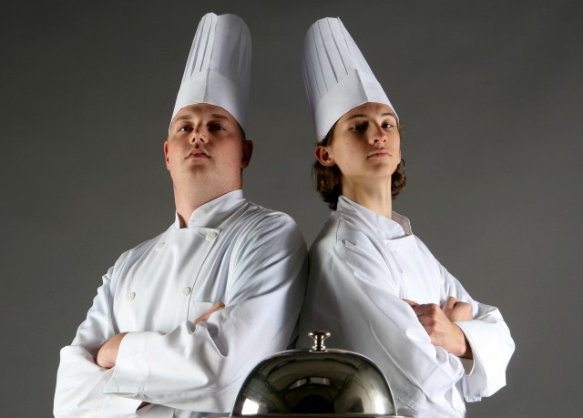 Ein letzter grimmiger Blick in die Augen. Hier weicht keiner freiwillig auch nur einen Zentimeter. „Okay ihr beiden, ich will einen fairen Fight sehen“, sagt der Kampfrichter. Die beiden Kontrahenten verziehen keine Miene. Dann nicken sie langsam und kreuzen die Kochlöffel, als Zeichen des Fair-Plays. Bei den „Fighting Chefs“ kämpfen Köche der Region Usedom um die Gunst der Gäste. Ermittelt werden soll die beste Küche, abseits von traditionellen Restaurantkritiken. An einem Abend kocht der amtierende Meister gegen den Herausforderer. Der Kampf dauert acht Runden, was einem 8-Gänge-Menü entspricht. Wer am Schluss mehr Punkte bei den Gästen macht, gewinnt. Eine Gage erhalten die Kontrahenten nicht, die Einnahmen gehen an eine Hilfsorganisation. Amtierender Champion ist Hark „die Pranke“ Pezely vom Ahlbecker Hof, der seinen Gegner Ralf „der Hammer“ Haug vom Hotel Atlantic bei der Premierenveranstaltung knapp schlug. Die Erlöse in Höhe von 5.000 Euro gingen an UNICEF. Wie lange sich Pezely über seinen Titel freuen kann, ist offen: Die Köche von Usedom wetzen schon die Messer.