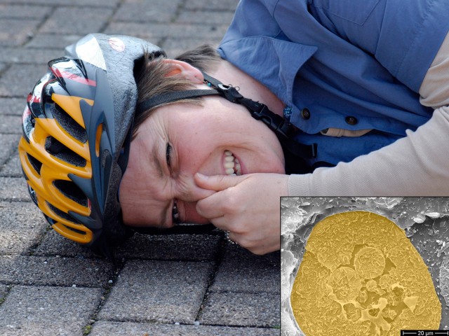 Fahrrad- oder Bauhelme sind nur zwei Beispiele für den vielfältigen Einsatz von festen Materialen in der Sicherheitstechnik. Die Schutzfunktion kann jedoch durch nicht sichtbare Risse stark eingeschränkt werden. Ein neu entwickeltes Verfahren des Fraunhofer-Instituts sorgt dafür, dass bei einem kritischen Riss Duftstoffe aus dem Inneren freigesetzt werden. So können auch Laien erkennen, wann ein ausreichender Schutz nicht mehr gegeben ist. Die Technologie wurde nach intensiver Entwicklungsarbeit zum Patent angemeldet. Damit ist der Weg für den Einsatz in Massenprodukten frei und macht mehr Sicherheit möglich.