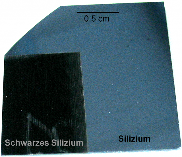 Durch ultrakurze Lichtpulse entstehen Materialen mit völlig neuen Charakteristika. Die Fraunhofer-Projektgruppe „Faseroptische Sensorsysteme“ fand heraus, dass Silizium, das Grundmaterial von Solarzellen, durch maßgeschneiderte Laserpulse in einer schwefelhaltigen Atmosphäre zu schwarzem Silizium weiterentwickelt werden kann. Daraus entstehen drei neue Eigenschaften für Solarzellen: Es ergibt sich eine extrem geringe Oberflächenreflexion durch schwarzes Silizium, erstmals kann auch Sonnenlicht im Infrarotbereich genutzt werden, was den Wirkungsgrad der Solarzelle um 25 Prozent steigert, und es ist gelungen, die benötigten Schwefelatome in die Solarzellen einzubauen.