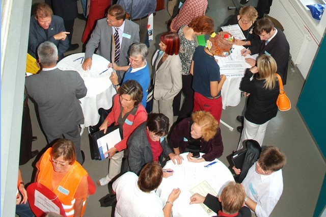 Bitte schön die Dame, hier ist Ihr soziales Engagement! Darf es auch noch etwas unternehmerisches Know-how sein? Ähnlich wie beim öffentlichen Warenverkehr vereinbaren Gemeinnützige und Geschäftsleute beim Forum „Gute Geschäfte – Die Marktplatz-Methode“ gemeinsame Projekte. Auf der Plattform der Bertelsmann Stiftung können die Parteien in lockerer aber dennoch seriöser Atmosphäre den geeigneten Partner für lokale Kooperationen, wie Schülerhilfen oder Umweltschutzaktionen, finden. Wie auf einem Wochenmarkt bestimmen dabei Angebot und Nachfrage Art und Ausmaß der Zusammenarbeit. Während die Unternehmen Sachspenden, geschäftliche oder logistische Hilfe anpreisen, bieten die Gemeinwohlorganisationen Möglichkeiten, sich als „gute Firma“ für Hilfsbedürftige einzusetzen. Die Methode hat Erfolg: Über 50 Marktplätze pro Jahr mit etwa 3500 vereinbarten Projekten sprechen für einen florierenden Handel. Eines unterscheidet den Marktplatz jedoch von einem handelsüblichen Umschlagplatz: Bei dem Forum geht es lediglich um den guten Zweck, der Transfer von Geld ist tabu.