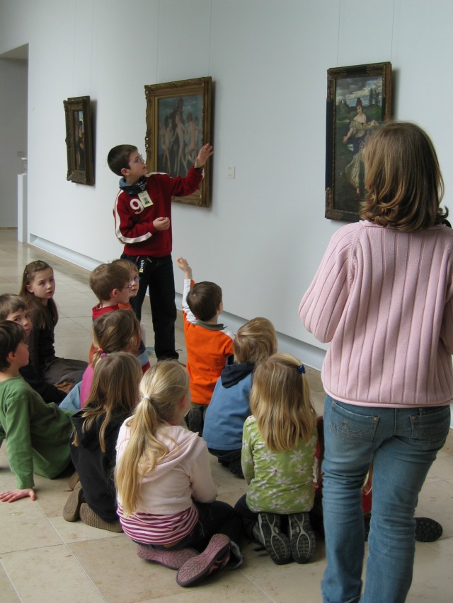 Kandinsky, Beckmann, Monet sind respekteinflößende Namen. Über ihre Gemälde haben Wissenschaftler unzählige Aufsätze und ganze Doktorarbeiten geschrieben. Die Kunst der Erwachsenenwelt kann sehr einschüchternd sein. Kein Wunder, dass sich Kinder mit Museumsbesuchen häufig schwer tun. Das Projekt „Kinder führen Kinder“ der Stiftung Mercator am Museum Folkwang in Essen macht nun mit seinem Programm Heranwachsenden Spaß an der großen Kunst. Interessierte Schüler im Alter von zehn bis 13 Jahren bereiten sich dabei mit museumspädagogischer Anleitung engagiert auf ihre Aufgabe als Führer vor. Ohne Einmischung von Erwachsenen zeigen sie dann Kindergruppen ihre Lieblingsbilder und berichten in eigenen Worten von ihren Gedanken zu den Werken. Die Führungen gestalten die Kinder immer zu zweit und entscheiden selbst über die Art der Präsentation. Die kleinen Besucher finden so einen leichten Zugang zu den Werken und hören gern und aufmerksam zu. Seit 2008 wird das Projekt auch an zwei weiteren Standorten, dem Josef Albers Museum in Bottrop und der Villa Hügel in Essen, durchgeführt.