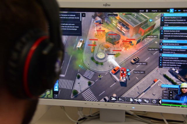 Hochwasser, Gebäudebrände, Anschläge: Auf Krisenereignisse wie diese sind die meisten Menschen hierzulande nicht vorbereitet. Wissenschaftler der Universität Paderborn – C.I.K. kreieren deshalb zusammen mit Partnern das Serious Game TEAMWORK. Mit der Software können Katastrophenschutz-Mitarbeiter und freiwillige Helfer künftig gemeinsam für den Ernstfall trainieren. Wie verhalte ich mich in bestimmten Gefahrensituationen? Wie nutze ich Ressourcen effizient? TEAMWORK simuliert (Übungs-)einsätze ohne viel Aufwand, basierend auf 3-D-Geodaten. Wie die Krise in der virtuellen Welt gemeistert wurde, diskutieren die Teilnehmer anschließend online – und entwickeln so neue Lösungsstrategien für reale Einsätze.