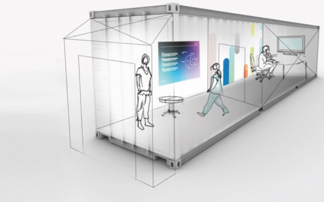 Außen Stahl, innen Hightech: Die RFRC Medizincontainer wirken wie simple Baucontainer. Sie beherbergen aber eine Arztpraxis mit Internetanschluss, über den Dolmetscher live zugeschaltet werden können. So wird ein Problem gelöst, mit dem Ärzte täglich konfrontiert sind: die Sprachenvielfalt der Flüchtlinge. Einen passenden Dolmetscher zu finden, dauert. Über den Video-Dolmetscherdienst SAVD stehen Übersetzer in rund 50 Sprachen sofort bereit. Das spart Zeit und vermeidet Missverständnisse zwischen Arzt und Patient. Der Social Entrepreneur MLOVE hat die Medizincontainer gemeinsam mit Cisco und Partnern wie avodaq entwickelt. Das Projekt wird von der Dorit & Alexander Otto Stiftung gefördert und von dem Deutschen Roten Kreuz, dem Universitätsklinikum Hamburg-Eppendorf sowie der Stadt Hamburg unterstützt.