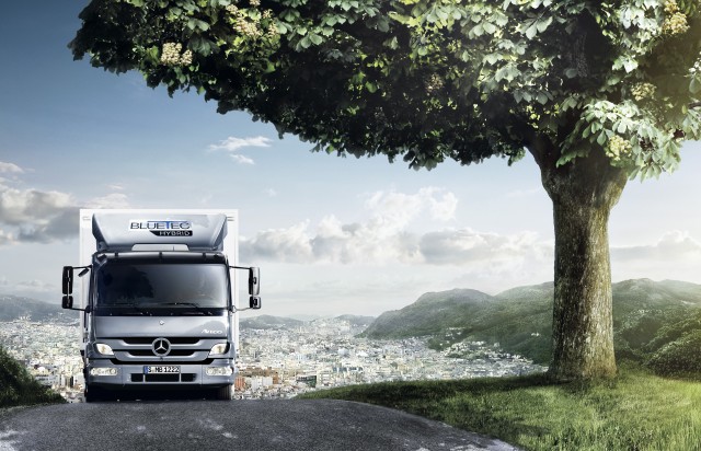 Brummis werden immer grüner: Mit dem Mercedes-Benz Atego BlueTec Hybrid entwickelte Daimler ein Vorbild für nachhaltige Nutzfahrzeuge. Der erste Serien-Hybrid-Lkw in Europa ist deutlich sparsamer als normale Lkw. Durchschnittsverbrauch und CO2-Ausstoß können um zehn bis 15 Prozent gesenkt werden, Geräusche werden reduziert. Anfahrt, Beschleunigung und Bergauffahrten werden durch eine Lithium-Ionen-Batterie unterstützt, die sich beim Bremsen durch Energierückgewinnung wieder auflädt. Für die Nutzfahrzeugbranche setzen die schadstoffarmen Hybrid-Lkw damit Maßstäbe im Transportalltag.