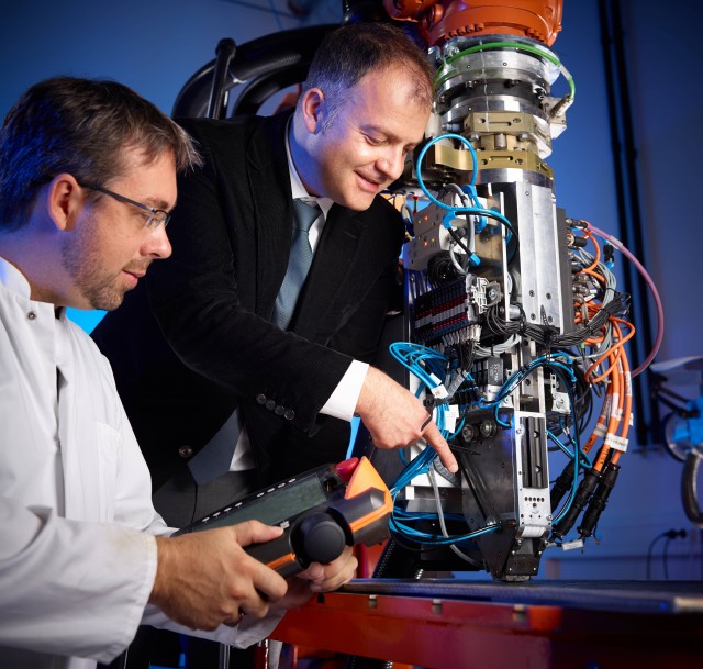 Weil sie deutlich leichter und steifer als Stahl sind, kommen Bauteile aus carbonfaserverstärktem Kunststoff (CFK) häufig in der Luftfahrt zum Einsatz. Die Produktion verläuft aber keineswegs automatisch, sondern in vielen einzelnen Schritte in präziser Handarbeit. Die Qualitätskontrolle nimmt daher viel Zeit und Geld in Anspruch. Um diese Kosten zu mindern, hat die Firma AIRBUS APWORKS ein neues Mess- und Analysesystem entwickelt. Dieses erfasst alle Produktionsschritte in der Fertigung von CFK-Werkstücken und wertet die gesammelten Daten in Echtzeit aus. So sorgt das System standortübergreifend für Qualität und optimierte Prozesse. Hier erhalten Sie Eindrücke von der Preisverleihung