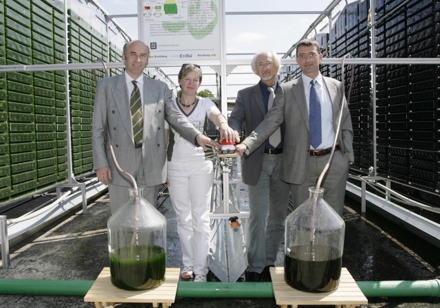 Ein Bioreaktor hilft mit schnell wachsenden Algen Kohlendioxid abzubauen.
