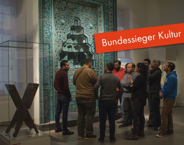 Massenflucht, Kriege und Wiederaufbau gehören zur deutschen Vergangenheit – und sind in Syrien und im Irak tägliche Realität. Um kulturelle und historische Zusammenhänge zwischen Deutschland und den beiden Ländern dreht sich Multaka: Das Projekt bildet Syrer und Iraker zu Museums-Guides aus, die andere Flüchtlinge durch Berliner Einrichtungen führen. Auf Arabisch tauschen sich Besucher und Guides über die alte Heimat aus – und nähern sich der neuen, indem sie kulturelle und historische Gemeinsamkeiten aufspüren. Workshops mit deutschsprachigem Publikum sensibilisieren beide Seiten für ein respektvolles Miteinander. Erfahren Sie hier Näheres zur Preisverleihung am 28. Juli 2016. Das Projekt ist zum Bundessieger 2016 gewählt worden. Video: Deutschland - Land der Ideen / Deutsche Bank / Roman Hänsler