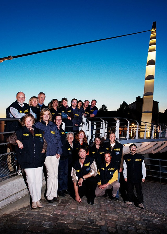 Nachts ausgehen macht Spaß, nachts allein nach Hause gehen nicht unbedingt. Welcher jungen Frau zum Beispiel ist nicht mulmig zumute, wenn sie allein in der Straßenbahn mit einer Gruppe aggressiv-betrunkener Jungs sitzt, die plötzlich anfangen, sie anzupöbeln? Gut, wenn dann die Nachtwanderer zusteigen: Junge Erwachsene ab 25 Jahren, die am Wochenende ehrenamtlich in kleinen Gruppen nachts auf Straßen und in öffentlichen Verkehrsmitteln unterwegs sind, erkennbar an einheitlicher Kleidung. Die Nachtwanderer sehen hin, greifen bei Schwierigkeiten beruhigend ein und sind jederzeit ansprechbar. Die freiwilligen Helfer verstehen sich nicht als Hilfspolizisten. Bewaffnet sind sie nur mit Handy, Taschenlampe und Erste-Hilfe-Set, geschult sind sie in Deeskalationstraining, Erster Hilfe und Rhetorik. Die Idee ist es, als Vertrauenspersonen mit Worten Aggressionen abzubauen, die Jugendkriminalität zu senken und allein durch Anwesenheit nachts Sicherheit in der Stadt zu vermitteln. Das Modell wird in Schweden mit Erfolg seit 1989 erprobt und wurde 2004 in Bremen übernommen.