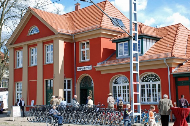 Orangerot leuchtet das Gemäuer weithin sichtbar. Der NaturBahnhof Chorin ist nicht nur optisch ein Genuss, sondern hat auch aus ökologischer Sicht viel zu bieten. Denn dank gezielter Energiesparmaßnahmen und einer neuen Erdwärmebeheizung sank der Schadstoffausstoß des restaurierten Gebäudes deutlich: Insgesamt 75 Prozent der CO2-Emmissionen konnten so eingespart werden. Darüber hinaus trägt der denkmalgeschützte Bahnhof auch als Ausgangspunkt für den Ökotourismus in der Region dazu bei, das Bewusstsein für die Natur zu schärfen: Besucher können mit dem Zug anreisen und von der Station aus eigene Erkundungstouren in das UNESCO-Biosphärenreservat Schorfheide-Chorin unternehmen: Eine vom Deutschen Tourismusverband zertifizierte Informationsstelle und ein barrierefreier Fahrradverleih machen es möglich. Zudem ist der Bahnhof auch ein Standort der Naturwacht des Landes Brandenburg. Kein Wunder also, dass der Bau mit dem „Fahrtziel Natur Award“ ausgezeichnet wurde, der vom Naturschutzbund Deutschland (NABU) und vom Bund für Umwelt und Naturschutz Deutschland (BUND) vergeben wird.
