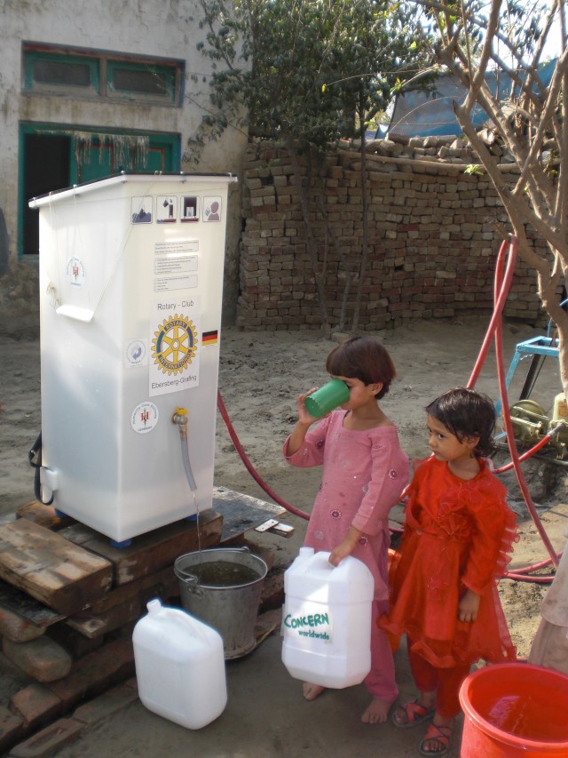 Ein Wasserrucksack mit Membranfilter kommt in Katastrophengebieten zum Einsatz.