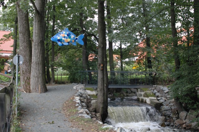 Seit tausend Jahren „fischelt“ es in der Region um Kemnath. Im Landkreis Tirschenreuth gibt es zahlreiche Teiche, wohin man schaut - um die 4.000 sind es. Die Karpfenzucht steht für die Geschichte und tausendjährige Tradition, deren Ursprung heute noch die steinernen Teichdurchlässe, einst von Bewohnern der Klöster errichtet, bezeugen. Mittlerweile ist der Karpfen zur Symbolfigur für Kemnath und Umgebung geworden. Mit ihm setzt die Stadt dem „Phantastischen Karpfenweg rund um das historische Kemnath“ ein kulturgeschichtliches Denkmal und stellt somit einen Dialog zwischen der Geschichte und der durch farbenfrohe Fische verkörperten Gegenwart her. Von der Kemnather Künstlerin Susanne Vonhoff stammt die Idee dieses Spazierweges. Umgesetzt wurde das ganze durch den Teamgeist der Bürgerinnen und Bürger Kemnaths. Jedem Karpfen ist ein Gedicht gewidmet, teils von einheimischen Künstlern verfasst. Der Weg schafft somit Beziehungen zwischen den Standorten und der Einmaligkeit Kemnaths.