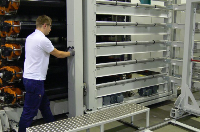 Eine Maschine versieht Solarmodule besonders effizient mit einer Schutzschicht.