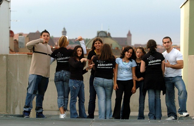 Wo gibt’s denn so was? Die "Südstadtkids" sind etwa 25 Schüler und Ehemalige der Hauptschule Hummelsteiner Weg in Nürnberg, die sich außerhalb der Schule in einer Arbeitsgemeinschaft engagieren – ganz freiwillig und mittlerweile schon seit drei Schülergenerationen. Ziel ist es, ihre soziale Kompetenz zu steigern, Deutsch zu lernen, für ein gesundes Klima im Viertel zu sorgen und als Mittler zwischen Schule und Eltern zu fungieren. Die Jugendlichen unterschiedlicher nationaler und ethnischer Herkunft bieten interkulturelle Elternabende, Museumsbesuche oder Stadtteilexkursionen an, machen Radiosendungen und programmieren Internetseiten. Die Südstadtkids der ersten Generation sind mittlerweile in Ausbildung oder besuchen weiterführende Schulen, stehen aber dem Projekt als Mentoren weiterhin zur Seite. Ein pädagogisches Team von Volkshochschule, Hauptschule und Universität bietet den organisatorischen und inhaltlichen Rahmen für die Aktionen der Südstadtkids. Damit haben die Jugendlichen starke Partner, die das Projekt professionell begleiten und einen Zugang zur Öffentlichkeit schaffen.