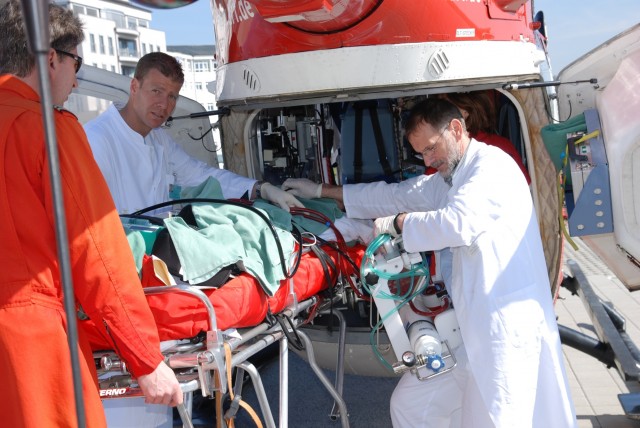 Trotz der besten Ärzte vor Ort kann es sein, dass an kleineren Krankenhäusern die notwendigen Klinik-Apparate fehlen, um Patienten mit schwerstem Herz- und Lungenversagen behandeln zu können. Lebensrettende „High-Tech" Medizingeräte sind oft nur an wenigen Krankenhäusern verfügbar und lassen sich aufgrund ihrer Größe und ihres Gewichts kaum transportieren. Eine herkömmliche Herz-Lungen-Maschine etwa, die den Blutkreislauf aufrechterhält und den Transport ermöglicht, ist bis zu 1,50 Meter lang und wiegt circa 200 Kilogramm. Mit einer interdisziplinären Arbeitsgruppe aus Ärzten und Ingenieuren ist es der Uni-Klinik Regensburg, in Zusammenarbeit mit dem Medizinprodukthersteller MAQUET Cardiopulmonary AG, gelungen, eine tragbare Mini-Herz-Lungen-Maschine zu entwickeln. Bereits mehreren Patienten hat diese Neuentwicklung nach Angaben der Klinik das Leben gerettet. Die Maschine wiegt nur 27 Kilogramm und kann auch unter einfachen Bedingungen an den Kreislauf des Patienten angeschlossen werden. So kann sie auch im Rettungshubschrauber bei schwersten Notfällen eingesetzt werden.