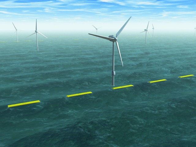 Gekoppelt mit der Infrastruktur von Offshore-Windparks wandelt das Nemos-System die Energie von Meereswellen in elektrische Energie